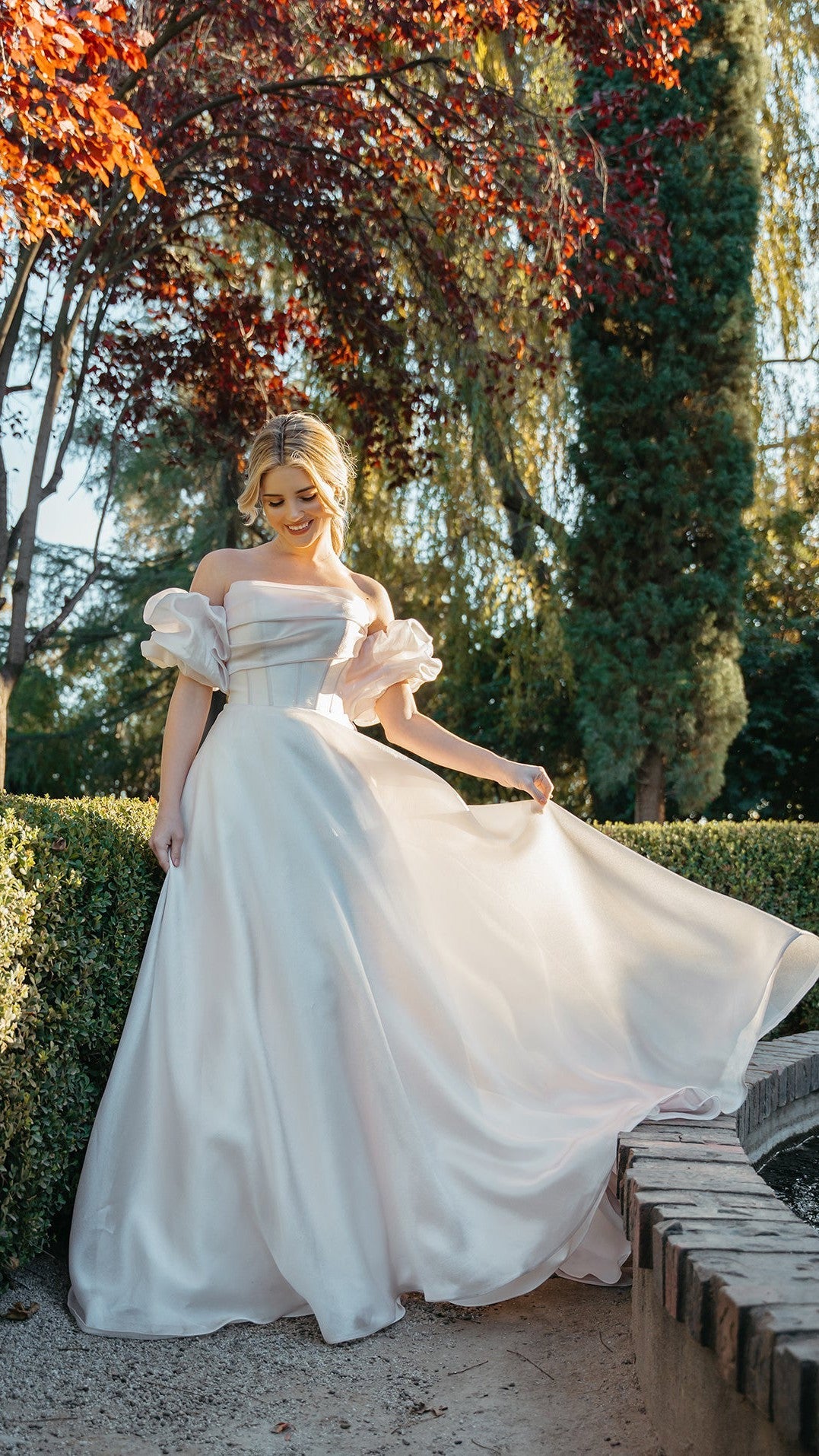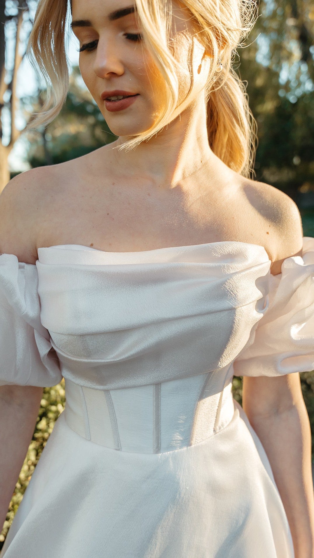 Princess Puff Sleeve Organza Ballgown Wedding Dress
