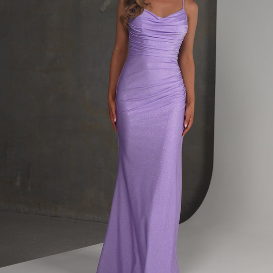 Make a statement in our glamorous Vega formal dress by Tania Olsen Designs, crafted from a soft sparkle knit that hugs your curves in a flattering fitted silhouette. The bodice features a softly draped sash detail that adds texture and elegance, while the V-neckline and delicate spaghetti straps that lace up at the back create a romantic, adjustable fit. A daring thigh-high side split adds movement and allure, complemented by built-in bra cups for comfort and support. Finished with an invisible back zipper, this dress is perfect for formal events, proms, or any occasion where you want to shine.